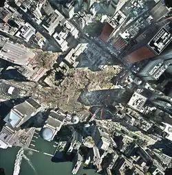 Les attentats du sont les attentats les plus meurtriers jamais perpétrés : le bilan officiel est de 2 977 morts et 6 291 blessés[Na 1]. L'attaque des tours jumelles provoque à elle seule la mort de 2 753 personnes, dont 343 pompiers et 60 policiers, mais seules 1 647 victimes sont formellement identifiées entre 2001 et 2021. Le , Mary Robinson, chargée du Haut-Commissariat des Nations unies aux droits de l'homme, qualifie ces attentats de crimes contre l'humanité, alors qu'ils font par ailleurs l'objet de multiples théories du complot, dénoncées comme des théories « révisionnistes », voire « négationnistes ». La Commission nationale sur les attaques terroristes contre les États-Unis est créée en 2002 pour expliquer comment ces attentats peuvent se produire et surtout éviter que cela ne se reproduise. Dans son rapport[1] publié fin juillet 2004, elle établit la responsabilité du réseau Al-Qaïda, en affirmant que les dix-neuf terroristes auteurs de ces attentats-suicides en sont membres et que le commanditaire en est Oussama ben Laden, qui les revendique à plusieurs reprises[4].