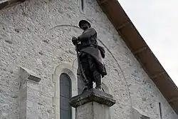 Ce monument qui présente la statue d'un soldat de la première guerre mondiale en pied est situé devant l'église.