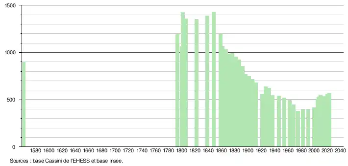 - ↑ Fiches Insee - Populations de référence de la commune pour les années 2006, 2007, 2008, 2009, 2010, 2011, 2012, 2013, 2014, 2015, 2016, 2017, 2018, 2019, 2020, 2021 et 2022.