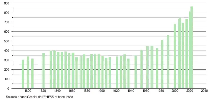 - ↑ Population municipale de référence en vigueur au 1er janvier 2025, millésimée 2022, définie dans les limites territoriales en vigueur au 1er janvier 2024, date de référence statistique : 1er janvier 2022.