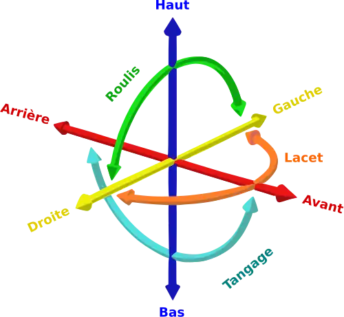 La commande d'attitude consiste à ajuster l'orientation dans l'espace et à réguler les mouvements d'avant en arrière (tangage), de gauche à droite (roulis) et autour d'un axe vertical (lacet).