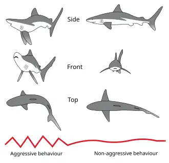 Les requins présentant ce comportement sont généralement sur le point d'attaquer ou de fuir[1].