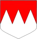 - D'argent denticulé de gueules.