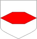 - D'argent à la fasce aiguisée de gueules.