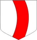 - D'argent à un pal de gueules arqué à sénestre.