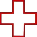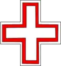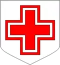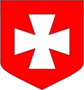- Croix d'argent bordée de gueules.