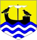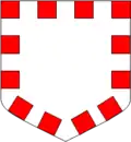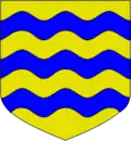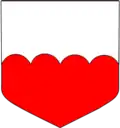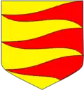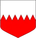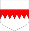 - Coupé d'or à la fasce crénelée de gueules, et d'argent à la fasce crénelée-entaillée d'azur.