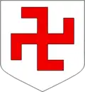 - D'argent à la croix gammée de gueules.