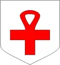 - D'argent à la croix fourchée de gueules.