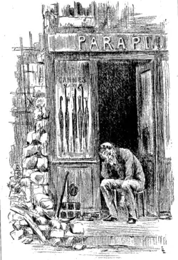 Chapitre XIII. En novembre, Geneviève, abandonnée par Colomban, meurt de chagrin. Son enterrement sert de manifestation de protestation du petit commerce contre le géant Au Bonheur des Dames. Se sentant coupable, Denise obtient des compensations financières pour les chutes inévitables de Bourras et Baudu, mais Mouret la convainc que le progrès est à ce prix. Robineau, désespéré par la faillite de son commerce, tente de se suicider en se jetant sous un omnibus. Bourras est chassé de chez lui et refuse les compensations de Mouret. Mme Baudu se laisse mourir et son mari abandonne sa boutique pour s'enfermer dans une maison de retraite.