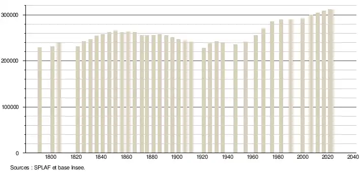 - ↑ Fiches Insee - Populations de référence du département pour les années 2006, 2007, 2008, 2009, 2010, 2011, 2012, 2013, 2014, 2015, 2016, 2017, 2018, 2019, 2020, 2021 et 2022