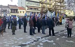 - ↑ (el) « Επικυρώθηκε στα Σκόπια η συμφωνία των Πρεσπών και η προδοσία έρχεται στην Ελλάδα! » [« L'accord de Prespa a été ratifié à Skopje et la trahison arrive en Grèce! »](Archive.org • Wikiwix • Archive.is • Google • Que faire ?), sur xrisiavgi.com, (consulté le ).