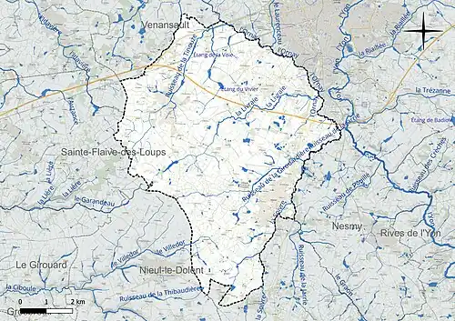 Le terrritoire communal, qui compte de nombreux plans d'eau, est drainé par plusieurs ruisseaux.