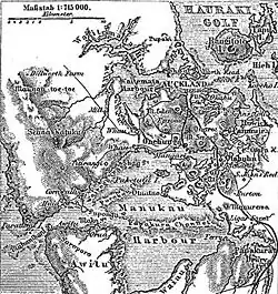 L'isthme fut tout d'abord occupé par les Māori qui s'y établirent autour de l'an 1350, attirés par les terres fertiles et riches de la région. Dans un premier temps, les Māori attribuèrent le nom Tamaki Makau Rau[19] à la ville. Beaucoup de pa (villages fortifiés) y furent construits, particulièrement sur les volcans (aujourd'hui, il est toujours possible d'observer les traces de pa, notamment sur les anciens volcans que sont le Mont Éden et le One Tree Hill). La population Maori de la région avant l'arrivée des Européens est estimée à environ 20 000 personnes[20],[21]. L'introduction des armes à feu, d'abord dans le Northland, perturbe l'équilibre des pouvoirs et mène à des guerres inter-iwi dévastatrices, ayant pour conséquence le déplacement d'iwi qui se réfugient dans des régions moins susceptibles aux raids, à l'intérieur des terres. Par la suite, la région abrite relativement peu de Maori lors du début de la colonisation européenne de la Nouvelle-Zélande. Il n'y a toutefois pas de preuve que ce soit à cause d'une politique délibérée de la part des Européens[22],[23].