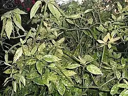 Le genre botanique Aucuba regroupe quelques espèces d'arbustes originaires d'Asie centrale ou du Japon. La plus connue d'entre elles est Aucuba japonica, fréquemment plantée en haies ou en buissons, reconnaissable notamment à ses feuilles vertes et luisantes maculées de jaune pour la variété crotonifolia et variegata.