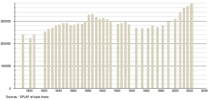 - ↑ Population municipale de référence en vigueur au 1er janvier 2025, millésimée 2022, définie dans les limites territoriales en vigueur au 1er janvier 2024, date de référence statistique : 1er janvier 2022.