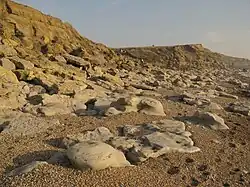 - ↑ Son nom est lié à la forme d'œufs des grosses boules de grès visibles sur la plage.