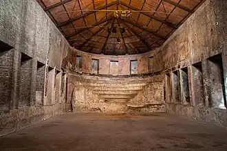 Le bâtiment, qui faisait partie des jardins de Mécène (en latin : Horti Maecenatis) , a été fouillé en 1874. C'est une grande salle rectangulaire à demi enterrée, de 24 m x 10,60 m, avec une abside sur l'un des petits côtés. Il remonte à la création de la villa de Mécène, qui date des années 30 environ.