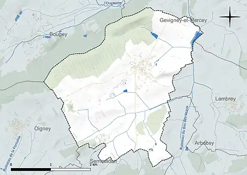 Les communes limitrophes sont Arbecey, Bougey, Gevigney-et-Mercey, Lambrey, Oigney et Semmadon.
