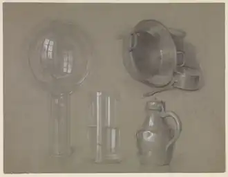 - ↑ Les traits de l'artiste se reflètent dans le ballon en verre à gauche.