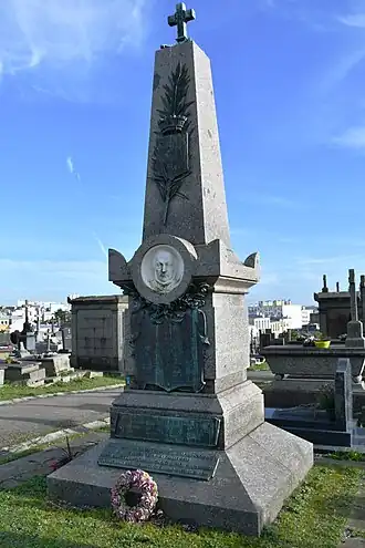 Il meurt d'une pneumonie le à Brest. Pour honorer le premier maire républicain de Brest, le conseil municipal vota le budget des funérailles, du terrain, et du monument, inauguré le [3], et qui se trouve au cimetière Saint-Martin de Brest. L'obélisque, en granit à gros grain gris et rose des Abers, est l'œuvre de Poilleu Aîné et fils, célèbre dynastie de marbriers sculpteurs ; il est orné d'un médaillon en marbre blanc, don du peintre Camille Bernier ami du défunt, et réalisé par le sculpteur Bartholdi (auteur de la statue de la Liberté et du lion de Belfort).