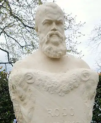 - ↑ La statue est créée par Rodo en 1913, mais n'est fondue qu'en 1918, avant d'être placée près de la cathédrale en 1939[3].