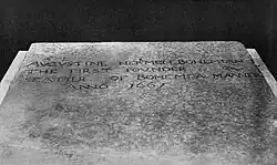 Une plaque utilisant l'orthographe tchèque de ce nom, Augustin Heřman, est apposée dans la rue Cinibulkova de la ville de Mšeno, en République tchèque.