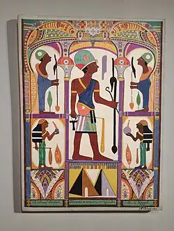Puis, ce seront des reproductions d’imagerie d’origines diverses qui vont presque systématiquement venir agrémenter les compositions de manière plus ou moins heureuse, mais leur faisant perdre de toute façon leur force primordiale et symbolique. L’Égypte est la principale source de cette imagerie (et même omniprésente entre 1935 et 1942), mais on compte aussi un nombre important de motifs chrétiens et quelques références à l’art du Moyen-Orient.[réf. nécessaire]