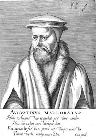- (de) Cet article est partiellement ou en totalité issu de l’article de Wikipédia en allemand intitulé « Augustin Marlorat » (voir la liste des auteurs).