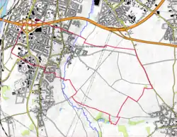 L'occupation des sols de la commune, telle qu'elle ressort de la base de données européenne d'occupation biophysique des sols Corine Land Cover (CLC), est marquée par l'importance des territoires agricoles (65,5 % en 2018), en diminution par rapport à 1990 (67,4 %). La répartition détaillée en 2018 est la suivante : terres arables (54,9 %), zones urbanisées (28,3 %), prairies (10,2 %), zones industrielles ou commerciales et réseaux de communication (6,2 %), zones agricoles hétérogènes (0,5 %)[14]. L'évolution de l'occupation des sols de la commune et de ses infrastructures peut être observée sur les différentes représentations cartographiques du territoire : la carte de Cassini (XVIIIe siècle), la carte d'état-major (1820-1866) et les cartes ou photos aériennes de l'IGN pour la période actuelle (1950 à aujourd'hui)[Carte 3].