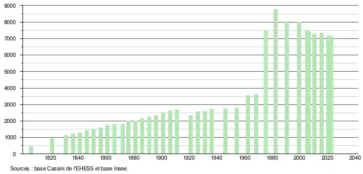 - ↑ Population municipale de référence en vigueur au 1er janvier 2025, millésimée 2022, définie dans les limites territoriales en vigueur au 1er janvier 2024, date de référence statistique : 1er janvier 2022.