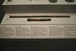 Le syrinx (par analogie avec l'instrument du même nom) portant l'anche et l'hypholmion étant une rallonge interchangeable modifiant le ton de l'instrument[51] qui est analogue au barillet de la clarinette moderne[52].