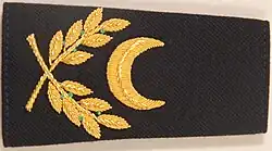 - avec l'insigne de l'aumônerie du culte concerné pour l'Armée de terre (croix pour les aumôniers catholiques et protestants, tables de la loi pour les israélites, croissant pour les musulmans),