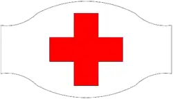 - ↑ 2e convention de Genève, art.42 : Le personnel visé aux articles 36 et 37, portera, fixé au bras gauche, un brassard résistant à l'humidité et muni du signe distinctif, délivré et timbré par l'autorité militaire.