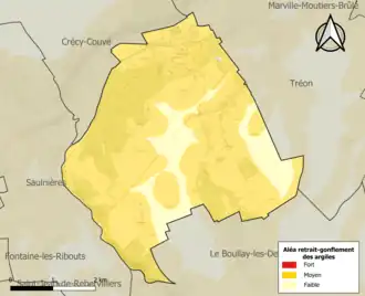 Le retrait-gonflement des sols argileux est susceptible d'engendrer des dommages importants aux bâtiments en cas d’alternance de périodes de sécheresse et de pluie. 85,4 % de la superficie communale est en aléa moyen ou fort (52,8 % au niveau départemental et 48,5 % au niveau national). Sur les 265 bâtiments dénombrés sur la commune en 2019, 265 sont en aléa moyen ou fort, soit 100 %, à comparer aux 70 % au niveau départemental et 54 % au niveau national. Une cartographie de l'exposition du territoire national au retrait gonflement des sols argileux est disponible sur le site du BRGM[15],[Carte 2].