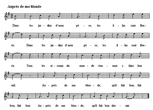 Auprès de ma blonde est une marche militaire du début XVIIIe siècle, dont le titre original est Le Prisonnier de Hollande, devenue très populaire en France au XVIIIe siècle.