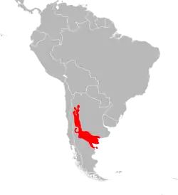 Cette espèce est endémique d'Argentine. Elle se rencontre dans les provinces de Catamarca, de La Pampa, de San Luis, de Córdoba, de Santiago del Estero, de Buenos Aires, de Chubut et de Río Negro[1].