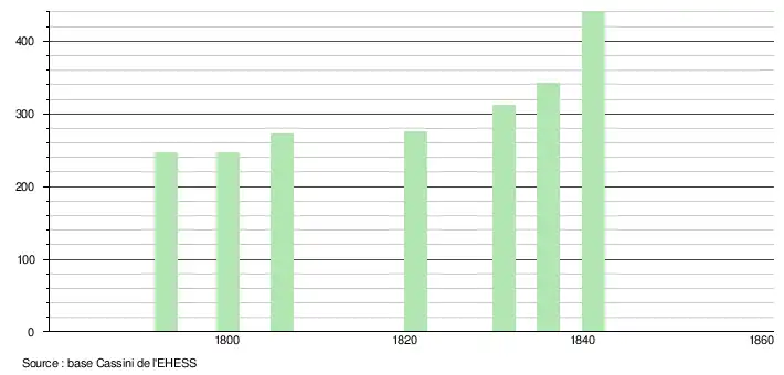 Jusqu'en 1843, la démographie d'Auroir-Aubigny était :