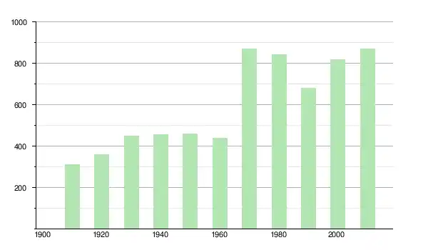 Il y avait 316 ménages dont 34,5 % avaient des enfants de moins de 18 ans, 39,6 % étaient des couples mariés, 25,0 % étaient constitués d'une femme seule, et 30,4 % n'étaient pas des familles. 28,5 % des ménages étaient composés d'un seul individu, et 13,6 % d'une personne de plus de 65 ans ou plus. Les tailles moyennes d'un ménage et d'une famille sont respectivement de 2,59 personnes et 3,18 personnes.