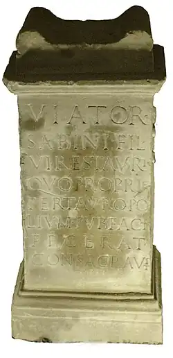 - ↑ Françoise Prévot, G. Fabre et P. Sillières, Inscriptions latines d'Aquitaine (ILA), Revue archéologique du Centre de la France, 2001, vol. 40, n° 1, pp. 304-306