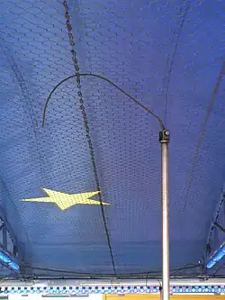 Elle tire son énergie d'une tige d'alimentation (aussi appelé pantographe) placée généralement à l'arrière du véhicule et qui la relie à une grille métallique d'alimentation électrique installée au-dessus de la piste. La tension d'alimentation est en courant continu, de l'ordre de 90 à 100 volts et le positif (+) est appliqué sur cette grille métallique aérienne. La masse, pour le retour du courant, est la surface de tôle au sol reliée à la carcasse du manège et à la terre (potentiel zéro) afin d'éviter tout risque d'électrocution.