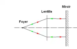 Dans le cas d'une lentille convergente, celle-ci est placée entre le miroir et la source de lumière. On obtient donc, par réflexion, une image de la source de lumière du côté de celle-ci. On déplace alors la lentille jusqu'à ce que la source de lumière coïncide avec sa propre image réfléchie. La distance entre la lentille et la source de lumière est alors la distance focale de la lentille.