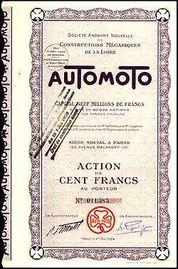 En 1901 est créée la Société anonyme de construction mécanique de la Loire avec le statut définitif de la marque Automoto pour voiturettes, carburateurs et changement de vitesse[3].