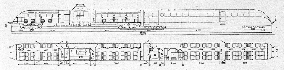 Le premier engin (mono caisse pour 48 voyageurs) est mis en service par le réseau de l'Administration des chemins de fer de l'État (État) sur la relation Paris - Deauville en , service qu'il assure à la moyenne de 116 km/h. Le 2e autorail est livré en . Entre ces deux dates le réseau de l'État, par l'intermédiaire de son directeur Raoul Dautry, a passé commande de deux autres autorails qui sont livrés en juillet et octobre 1934. Le , l'un des deux premiers autorails atteint 192 km/h entre Le Mans et Connerré. En , l'État commande une nouvelle série de cinq exemplaires.