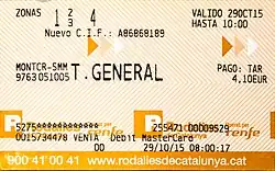 Le guichet automatique gère le système d’intégration tarifaire créé en 2001. Grâce à ce ticket, le transport public peut être utilisé de différentes manières dans la région métropolitaine des sociétés qui font partie et peuvent effectuer différents types de correspondance entre ces moyens de transport sans avoir à payer pour un délai qui dépend des zones traversées (bien que le billet doit être validé à chaque correspondance) . Toutefois, le simple billet est exclu de la possibilité d'effectuer un transport combiné. Ces entreprises fournissent un ou plusieurs services de transport, parmi lesquels les entreprises suivantes sont remarquables pour leur grande couverture du territoire, bien qu'il existe des dizaines d'entreprises, en particulier des opérateurs de bus dans les zones locales ou sous-communautaires qui peuvent être très importants. Au-delà de la municipalité de Barcelone[7]:
