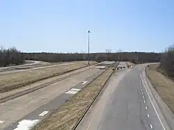 | 143,90 | — | Terminus est de la section principale; intersection à niveau | |||