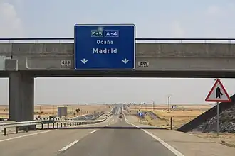 - L'A-4 poursuit son chemin vers le sud où elle dessert les villes de Aranjuez et Ocaña qu'elle traverse par l'ouest et d'où elle est rejointe par la R-4 (Madrid - Ocaña) et l'AP-36 (Madrid - Levant espagnol).