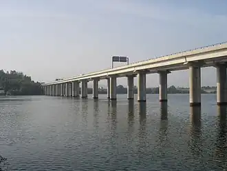 - L'autoroute poursuit son chemin vers le nord en enjambant la baie ou ria de Pontevedra à 25 km par le pont de la ria et en contournant la ville de Pontevedra par l'ouest.