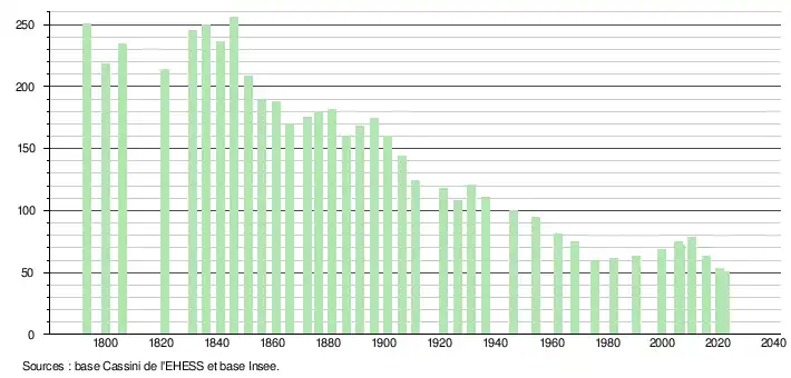 - ↑ Population municipale de référence en vigueur au 1er janvier 2025, millésimée 2022, définie dans les limites territoriales en vigueur au 1er janvier 2024, date de référence statistique : 1er janvier 2022.