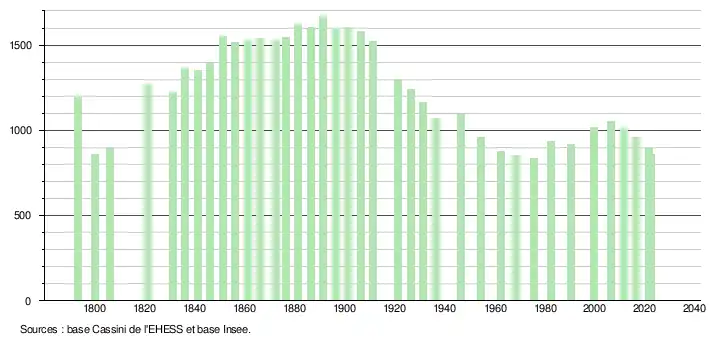 - ↑ Fiches Insee - Populations de référence de la commune pour les années 2006, 2007, 2008, 2009, 2010, 2011, 2012, 2013, 2014, 2015, 2016, 2017, 2018, 2019, 2020, 2021 et 2022.